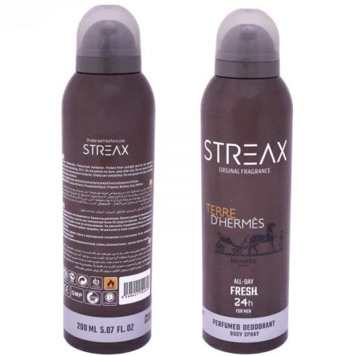 اسپری بدن مردانه استریکس مدل هرمس یکی از پرفروش ترین و پر طرفدارترین رایحه عطر و اسپری در جهان است که برای آقایانی که از بوهای تلخ استقبال میکنند پیشنهاد می گردد. این اسپری با تن خوش بویی از گریپ فروت ، پرتقال ، نتهای گلی و تندی خزه بهترین انتخاب برای فصل بهار و تابستان است. خرید اسپری با در نظر داشتن ماندگاری ۲۴ ساعته ، حجم ۲۰۰ میلی لیتری ، پخش بوی قوی و قیمت نهچندان بالایش بسیار منطقی به نظر می رسد. بطری اسپری به شکل یک استوانه طراحی شده است. روی بطری نشان تجاری استریکس را مشاهده می کنید. یک درپوش کمی شفاف روی سر اسپری قرار دارد. این درپوش پلاستیکی نازل را از آسیب ها و ضربه های احتمالی محافظت می کند.