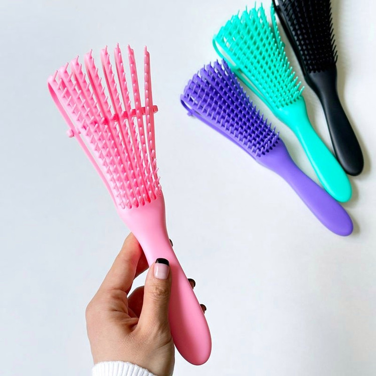 برس مو فلکسی دارای رنگبندی سازگار با موهای فر وحالت دار و نازک نوع برس مو تخت کاربرد برس معمولی گره باز کن جنس بدنه پلاستیک جنس سری پلاستیک کیفیت عالی انعطاف بالا بسیار کاربردی کمک در سلامت و زیبایی موها✅👍
