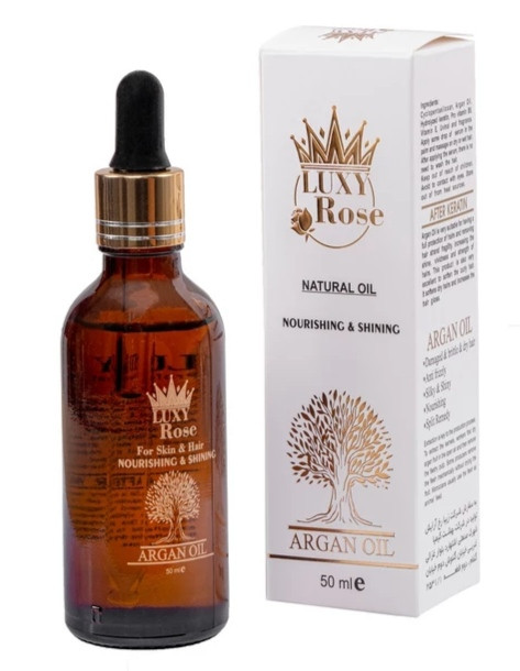 روغن آرگان لوکسی رز روغنی طبیعی است که از دانه های درختی به همین نام که در مراکش می روید گرفته میشود. روغن آرگان لوکسی رز دارای خواص اعجاب انگیزی برای پوست و مو است چرا که موها شما را تغذیه، تقویت و از آن ها محافظت میکند. روغن آرگان لوکسی رز به ویژه برای محافظت از موهای خشک ونازک شده بسیار موثر است و می تواند موهای آسیب دیده را ترمیم کند و به موهای کدر درخشش و شفافیت بدهد. همچنین استفاده از روغن برای بدن و صورت میتواند تا حد زیادی نرمی، جوانسازی و درخشندگی پوست را به دنبال داشته باشد. خواص روغن آرگان برای چروک صورت بسیار زیاد است. ارگان روغنی است که ضد لک، ضد چین وچروک و ضد پیری است و برای درمان جوش و آکنه نیز استفاده میشود. خواص روغن آرگان برای صورت بسیار زیاد است. به کمک این روغن پوست بدن و صورت شما آبرسانی و تقویت شده و دیگر خشک نخواهد بود. اسیدهای چرب روغن بدن آرگان، التهاب پوست را کاهش داده و خشکی کف پا را نیز برطرف میکند. همچنین شما عزیزان میتوانید از این روغن معجزهگر برای مراقبت از ناخنهای خود نیز استفاده کنید و به تقویت آنها، رفع شکنندگی و لایهلایه شدنشان بپردازید.
