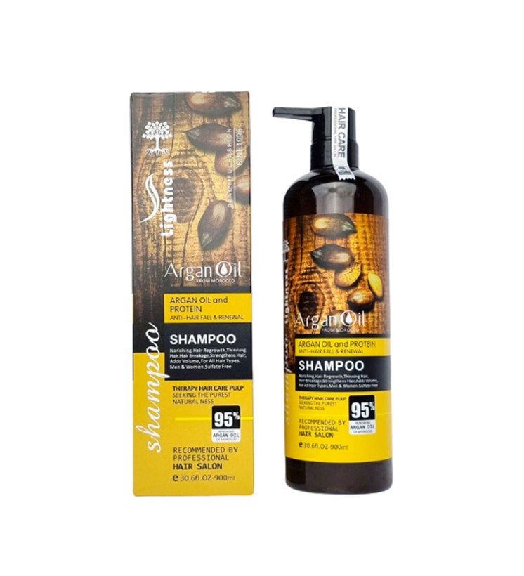 شامپو ضد ریزش و تقویت کننده لایتنس مدل فاقد سولفات دارای روغن آرگان و پروتئین حجم 900 میلی لیتر