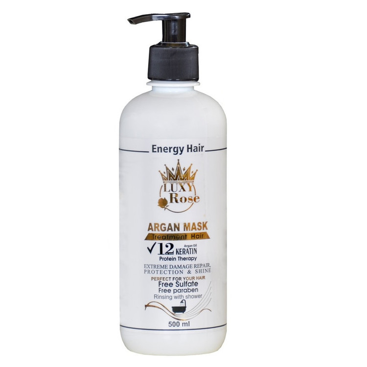 ماسک مو کراتینه حاوی روغن آرگان و هیدرولیز شده لوکسی رز Luxy rose با حجم 500میل .