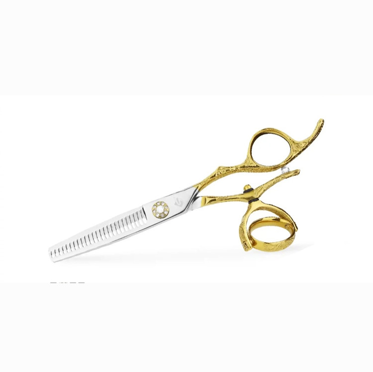 قیچی آرایشگری رزونال پیتاژ چرخشی سایز 5.5 اینچ Rezonal RL _460 دارای تیغه و بدنه استیل ساخت ژاپن است.بدنه از رنگ طلایی است و با نقوش زیبایی مزین شده است.سایز قیچی 5.5 اینچ است و با کیفیت بالایی که دارد مناسب افراد حرفه ای و مبتدی است.