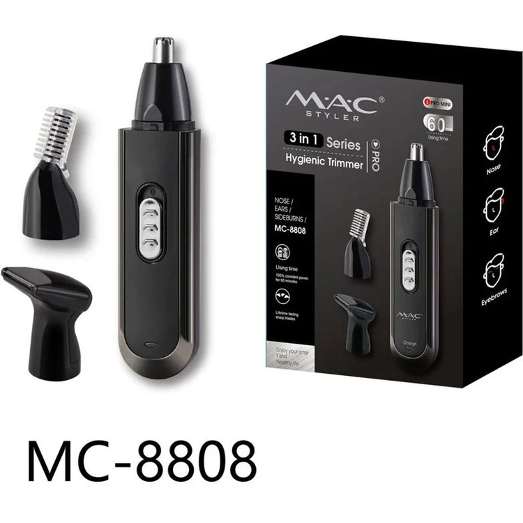 موزن 3کاره برند مک برخورداری از تیغه نانو برخورداری از تیغه خط زن استیل برخورداری از درب محافظ برخورداری از تیغه قابل شست وشو تکنولوژی اصلاح:برش مستقیم جنس تیغه: استیل ضد زنگ منبع تغذیه: باتری قابل شارژ(بی سیم) ضد آب (قابلیت استفاده زیر دوش):ندارد سر قابل شستشو: دارد سایر توضیحات: مک استایلرمدل 8808 موزن گوش و بینی تیغه مجزا جهت اصلاح دقیق تر قابلیت شارژ با دوام طولانی اقلام همراه: منبع شارژ وآداپتور برق منبع تغذیه:باتری قابل شارژ(بی سیم) برس برای تمیز کردن: دارد